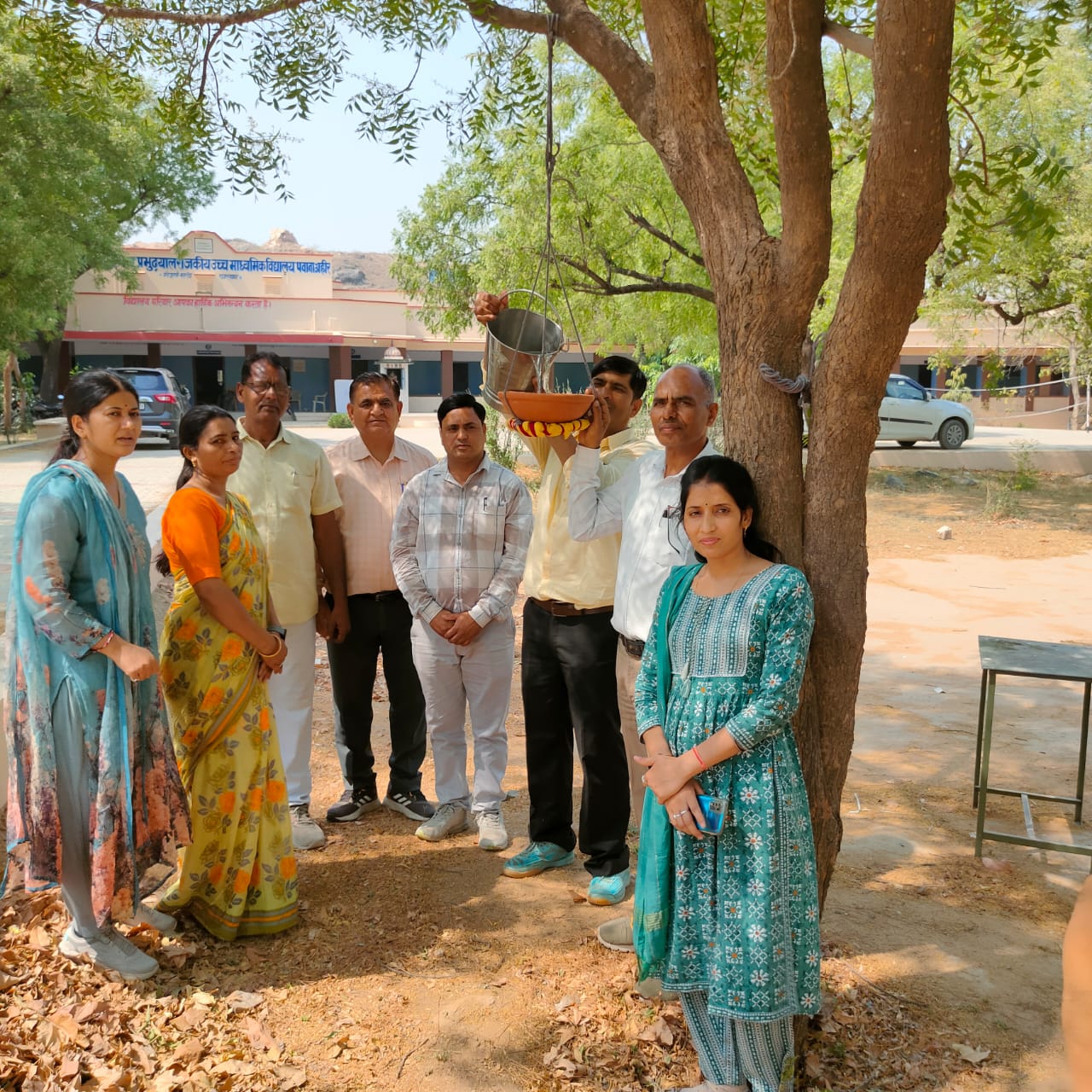 कोटपूतली :- अंतर्राष्ट्रीय मजदूर दिवस के अवसर पर धूप की बढ़ती तपन और लू के थपेड़ो में बेजुबान पक्षियों की प्यास बुझाने के लिए सेठ मूलचंद प्रभुदयाल राजकीय उच्च माध्यमिक विद्यालय पवाना अहीर कैम्पस में बीस परिंडे बांधे गए। प्राचार्य महेश चन्द यादव ने बताया कि विद्यालय परिवार की सदस्य मधु यादव द्वारा तपती धूप में पक्षियों के लिए दाना पानी की व्यवस्थार्थ विद्यालय कैम्पस में बीस परिंडे बांधे गए। प्राचार्य ने कहा कि जिस तरह अंतर्राष्ट्रीय मजदूर दिवस पर श्रमिको के अधिकार व उनकी परिस्थितियों को बेहतर बनाने के लिए समझा जा सकता है उसी तरह से हम सबको सामुहिक रूप से तपते मौसम में बेजुबान पक्षियों की परिस्थितियों को समझना चाहिए। पर्यावरण प्रहरी स्व. महावीर गुरूजी की बेटी मधु यादव की इस पहल पर प्राचार्य महेश चन्द यादव, उप प्राचार्य कृष्ण कुमार खजोतिया, प्रवक्ता रामकरण यादव अवार्डी, व्याख्याता सुमन चौहान, व्याख्याता प्रीतम सिंह, व्याख्याता अजय छींपी, माया यादव, दाताराम यादव, सतवीर यादव, विजय लक्ष्मी वरिष्ठ अ., बृजलाल शर्मा, शिवपाल सिंह यादव, विकास महरिया, राजेश मीणा, धोलू राम , रतिराम यादव,माडुराम यादव सहित सभी ने मधु यादव के नेक कार्य की सराहना की है।